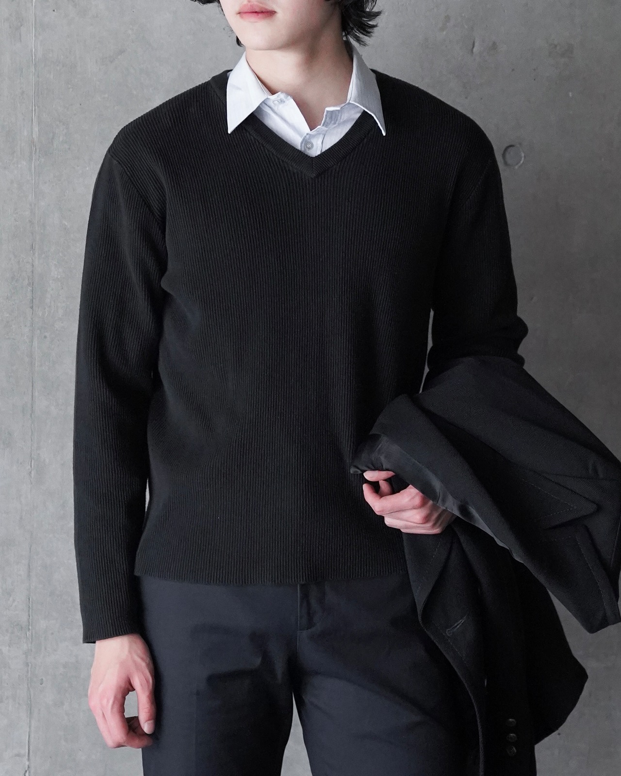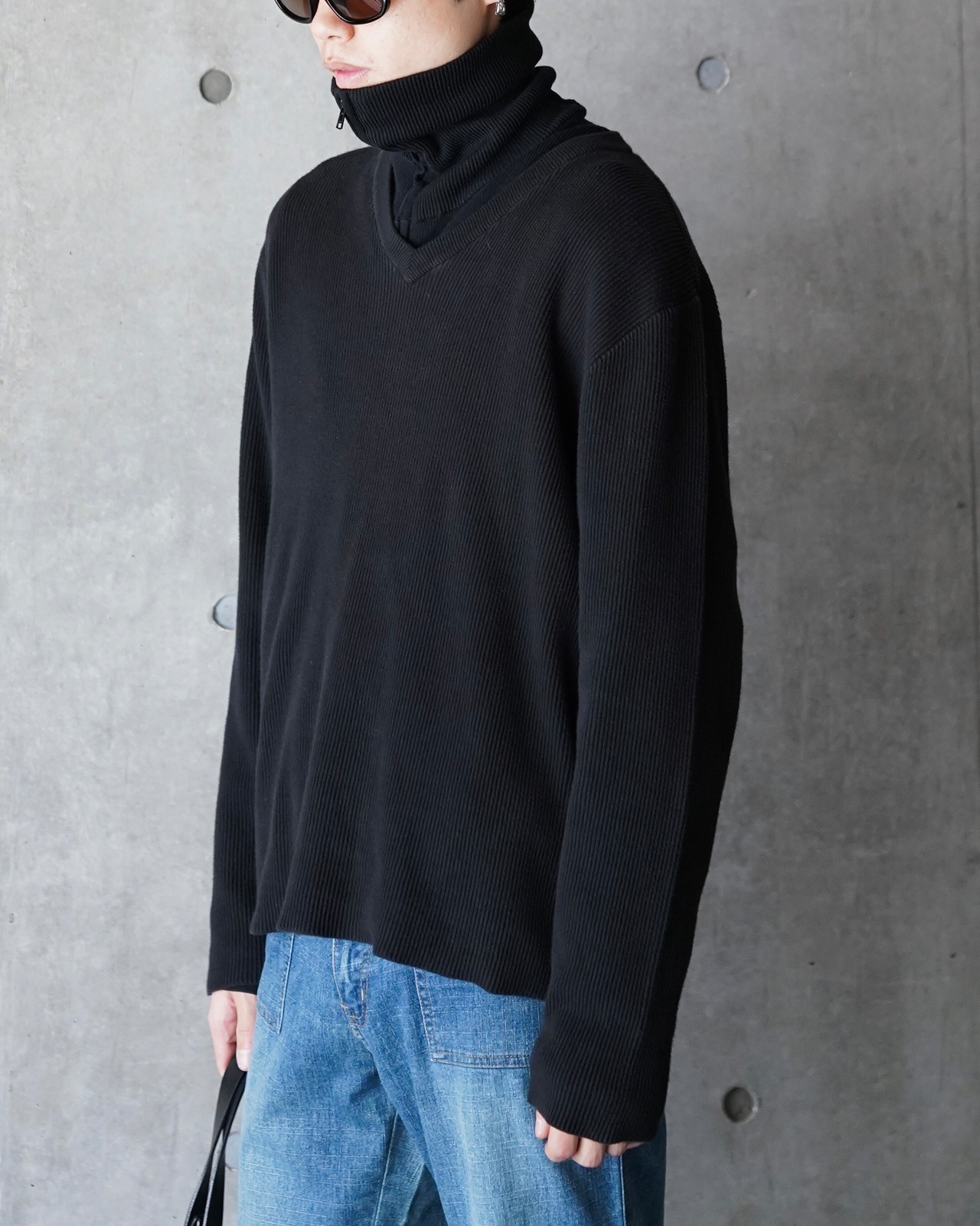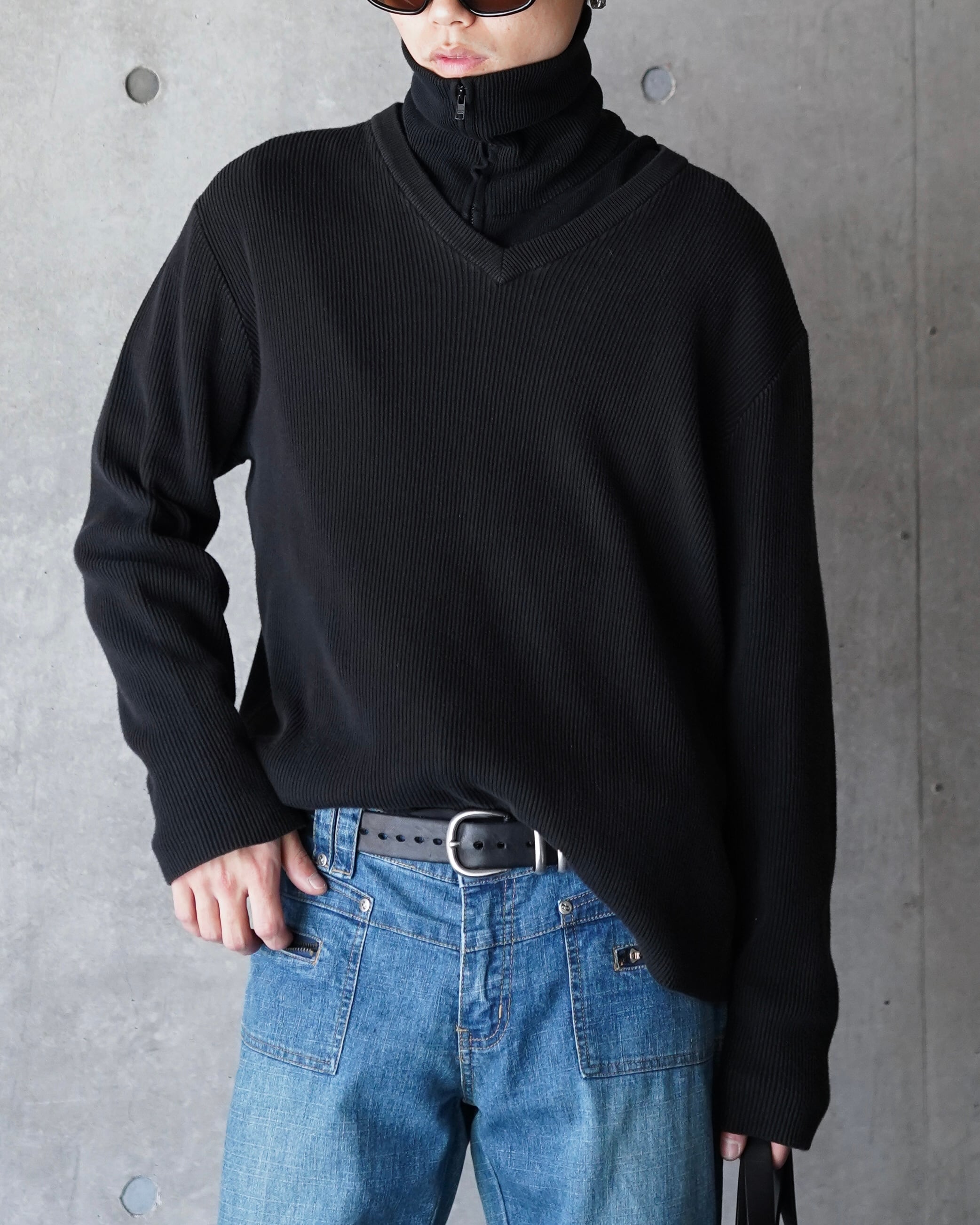 V-neck rib knit sweater