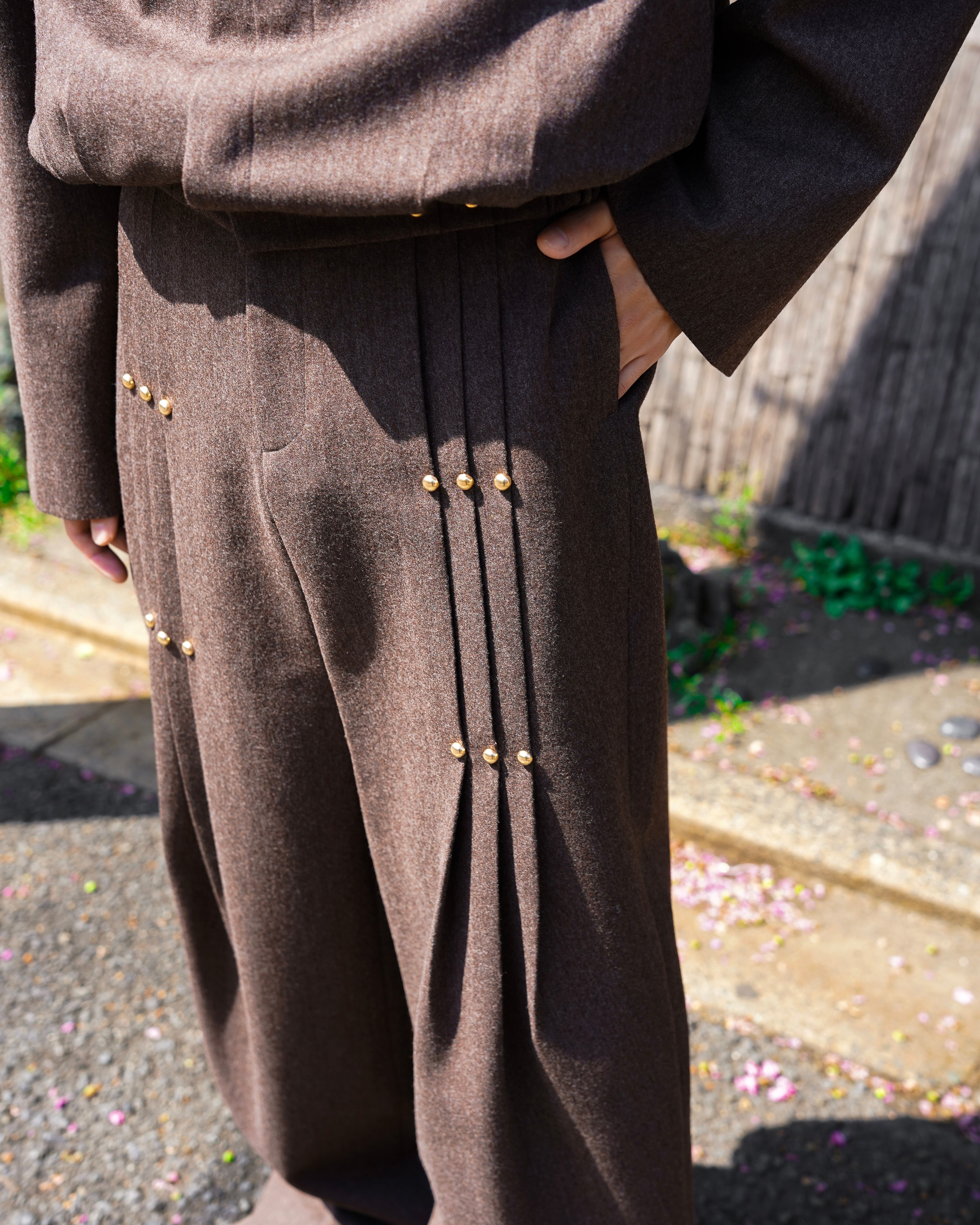 NEU_IN AW25 Golden pinpoint pleated trousers