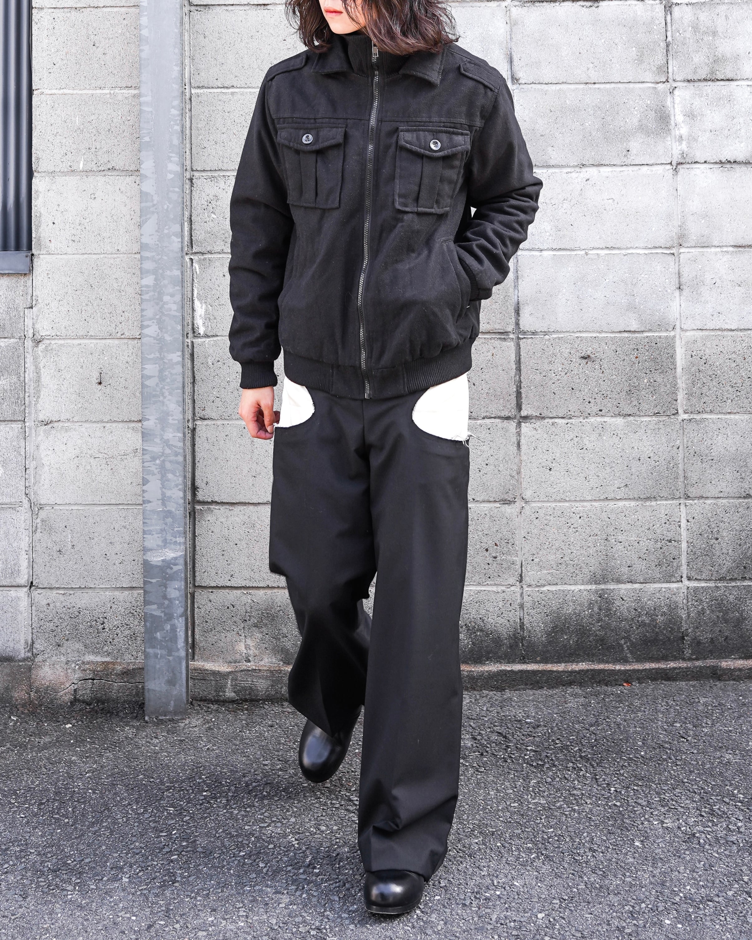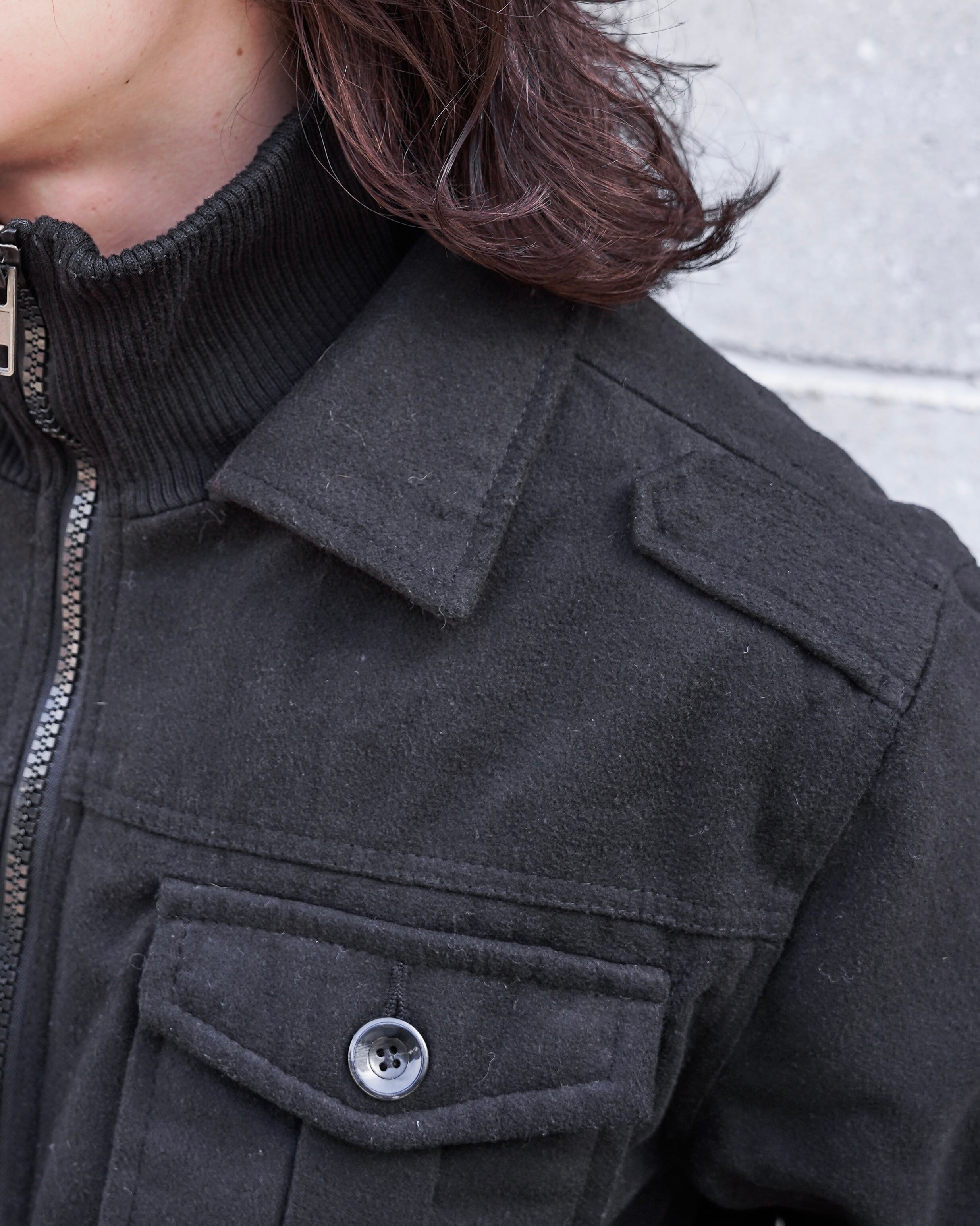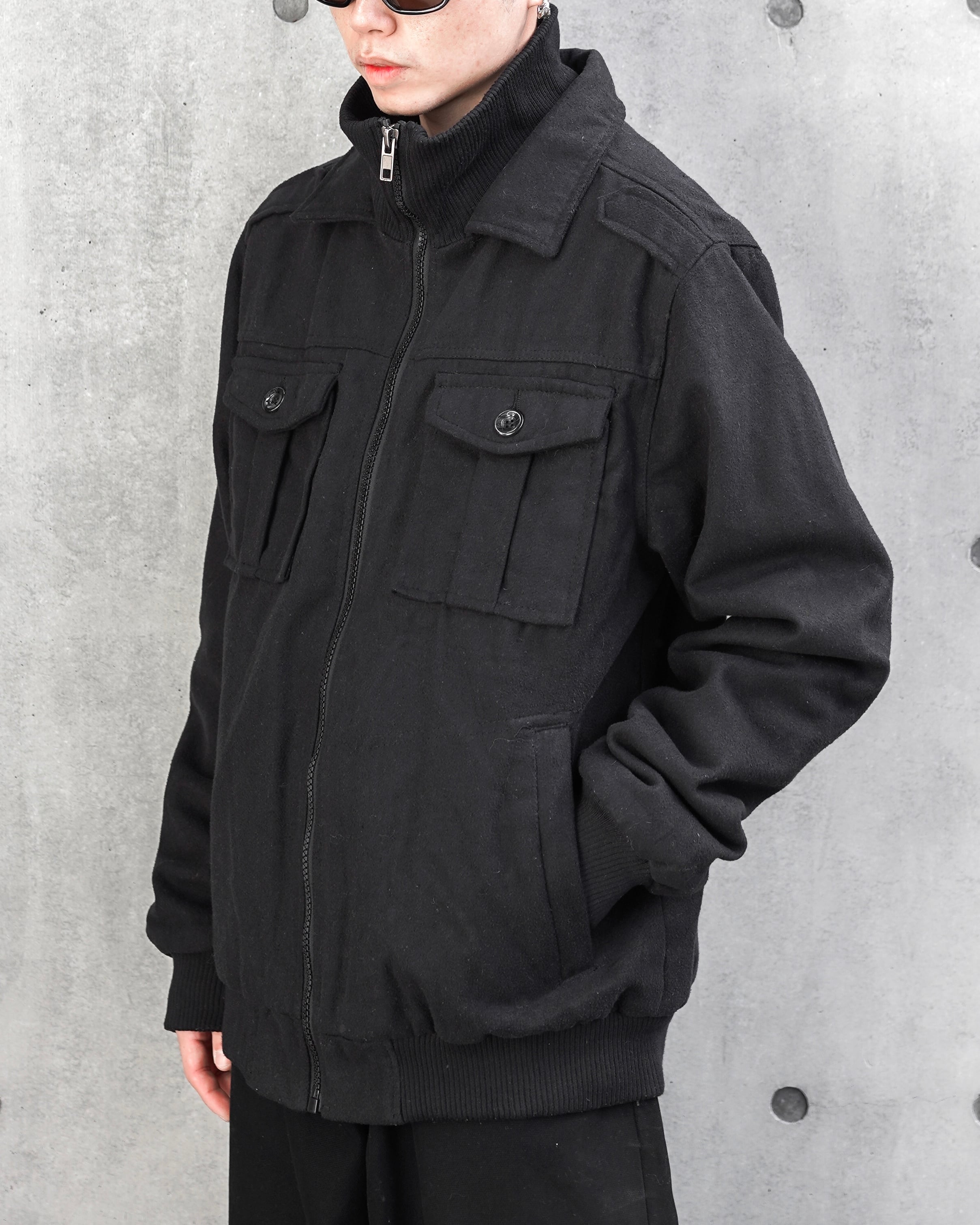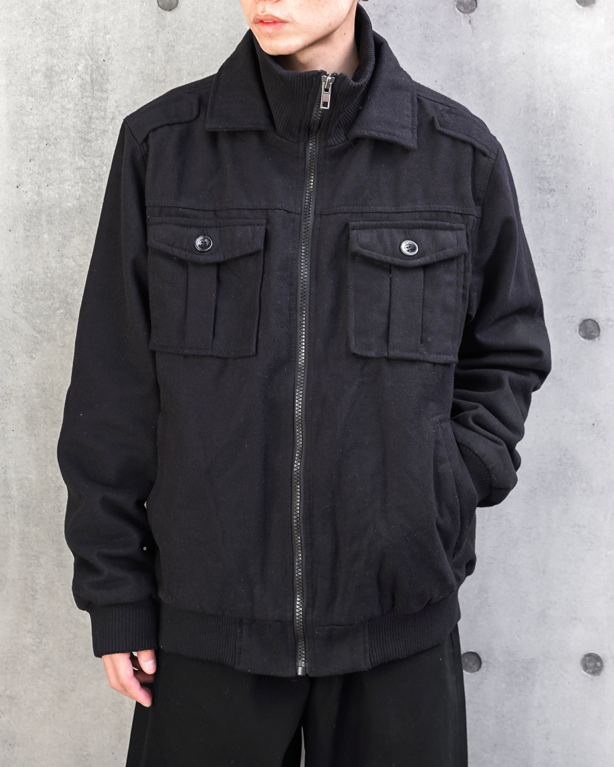 rib neck military half jacket