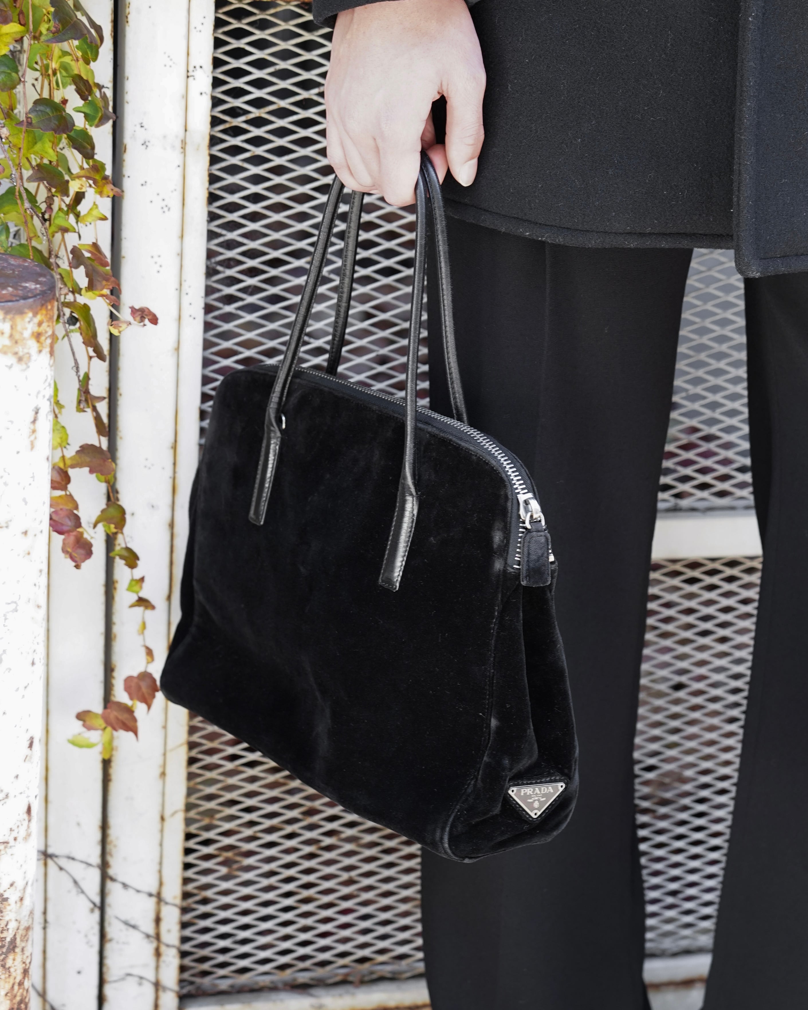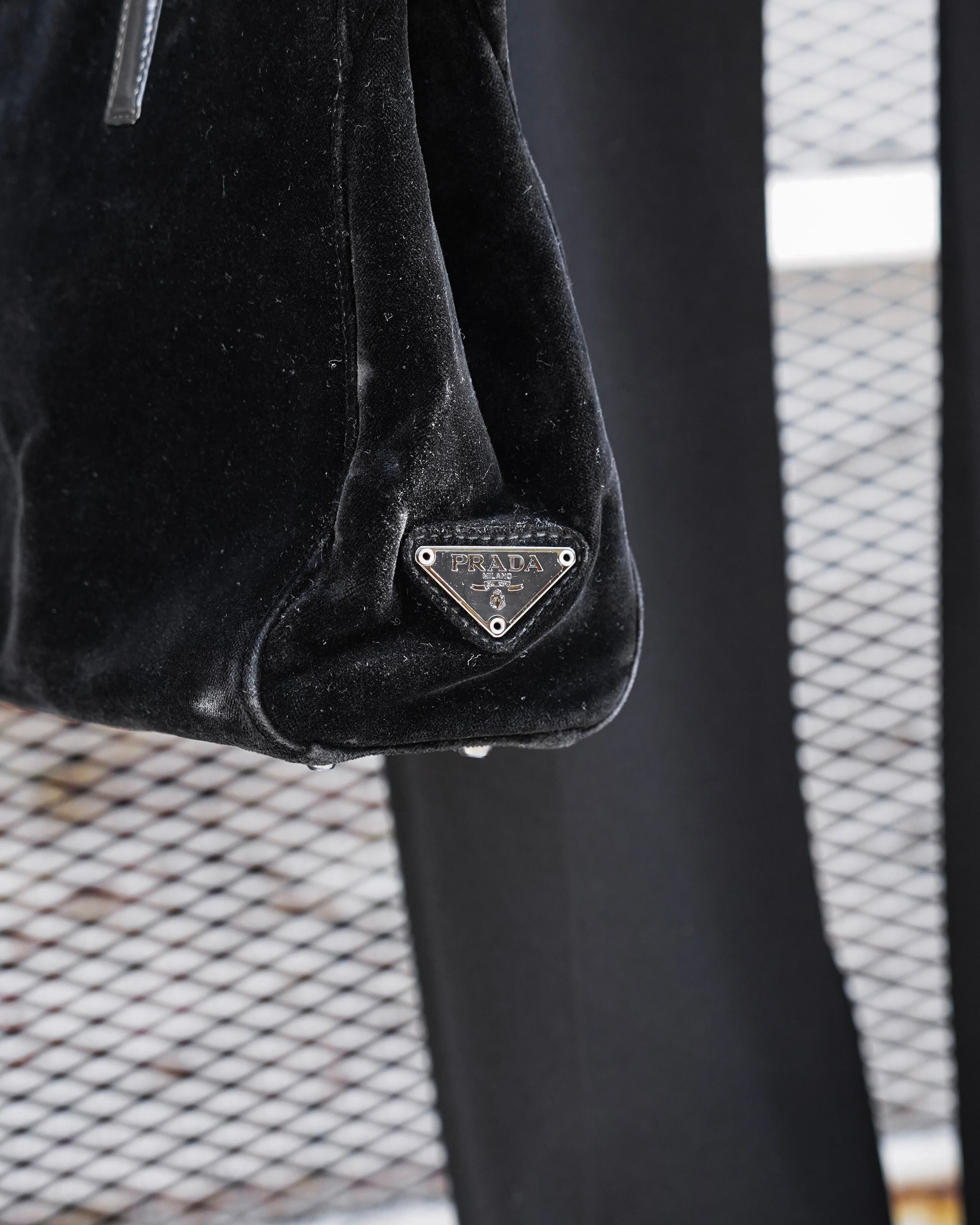 【PRADA】suede leather hand bag