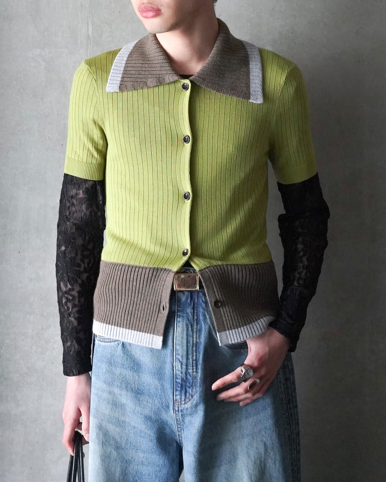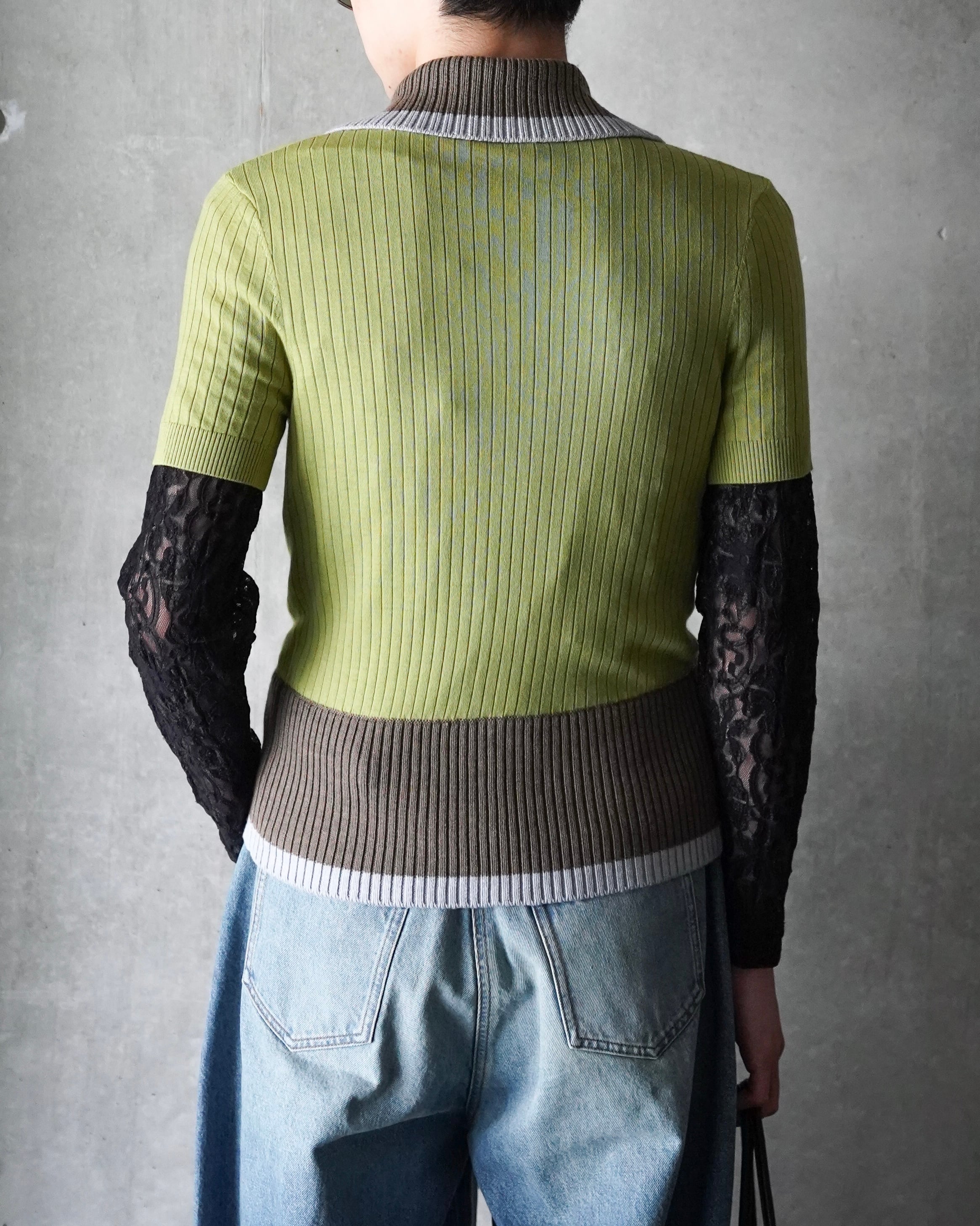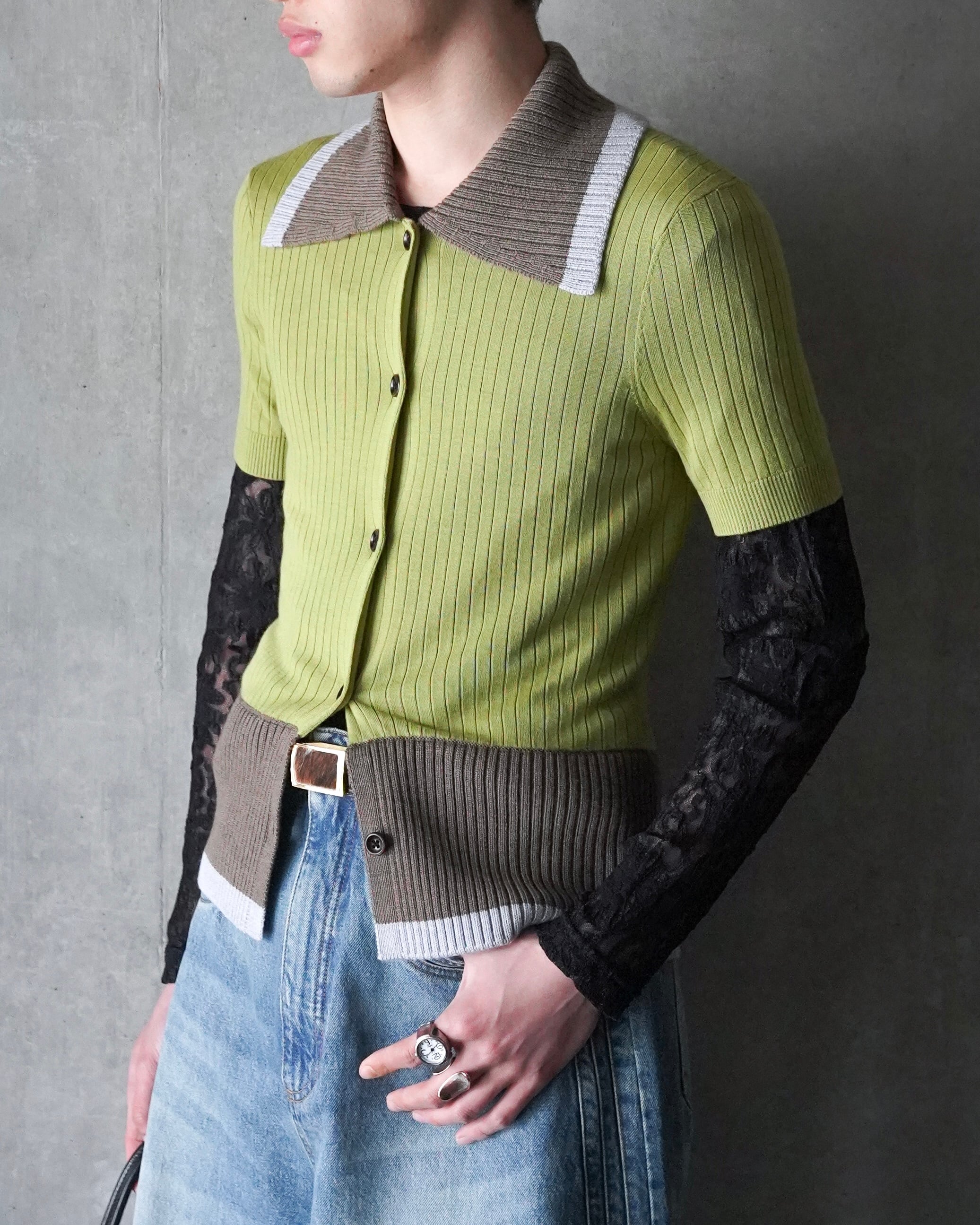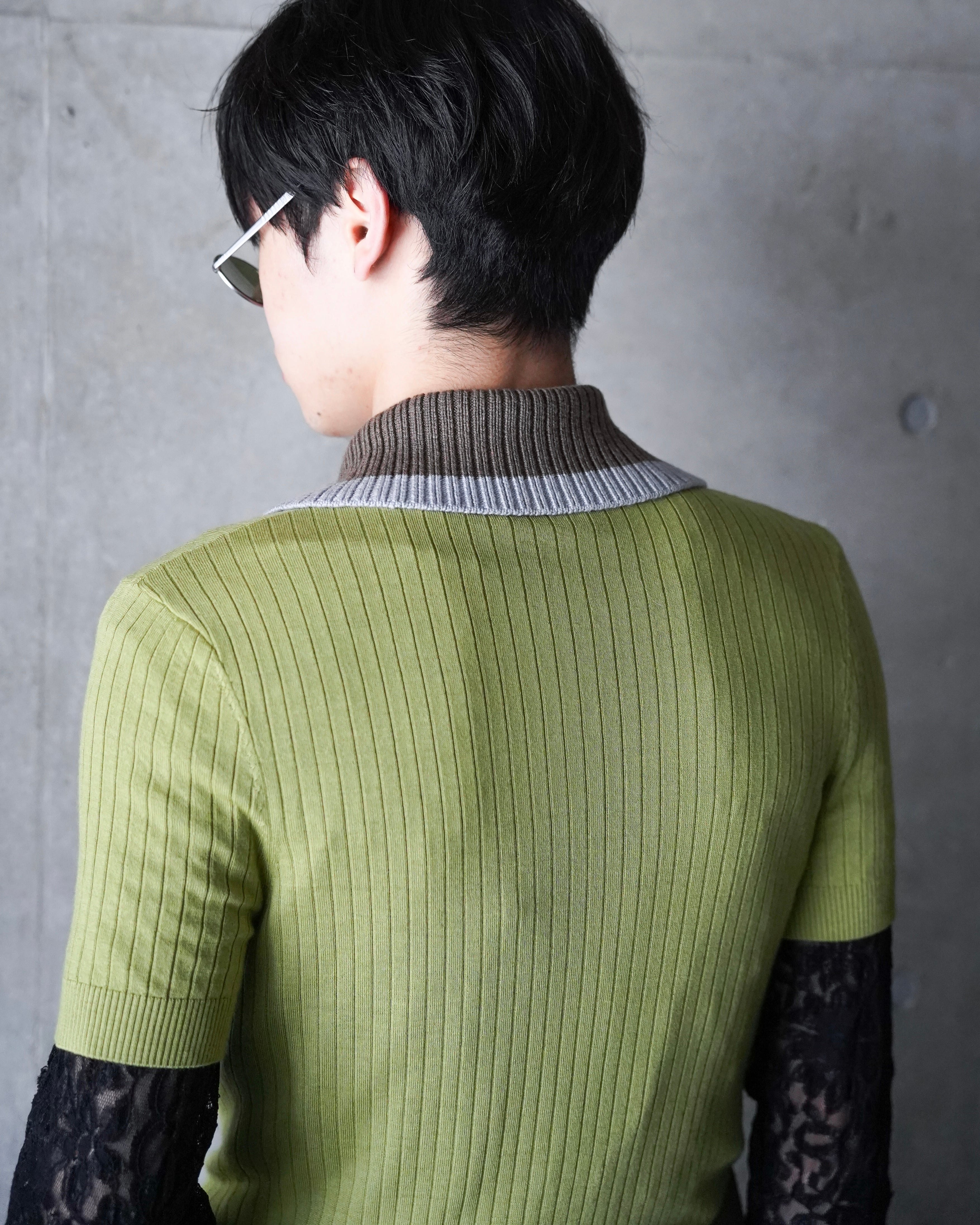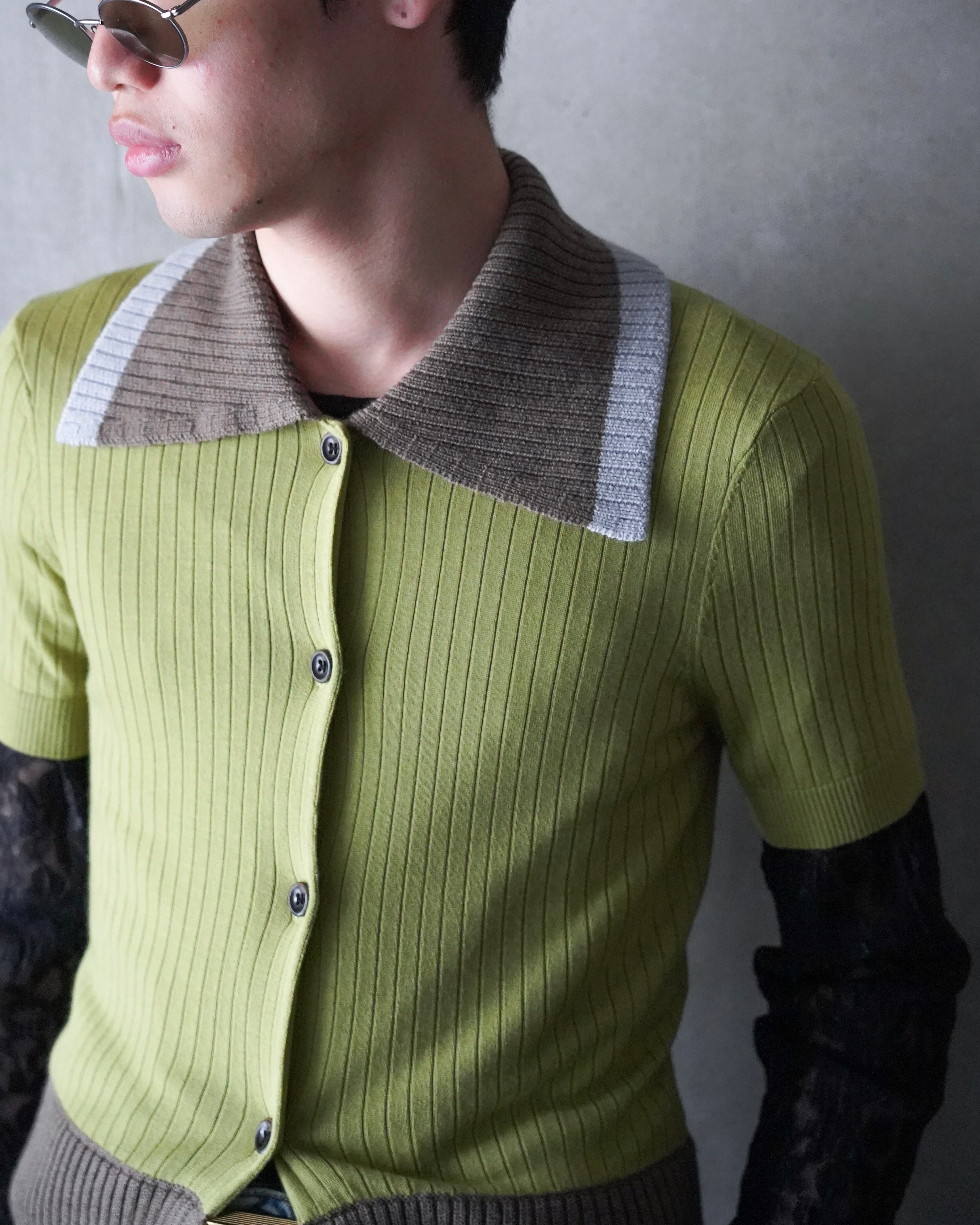 EGONLAB SS26 CONTRASTED RIBS KNIT POLO
