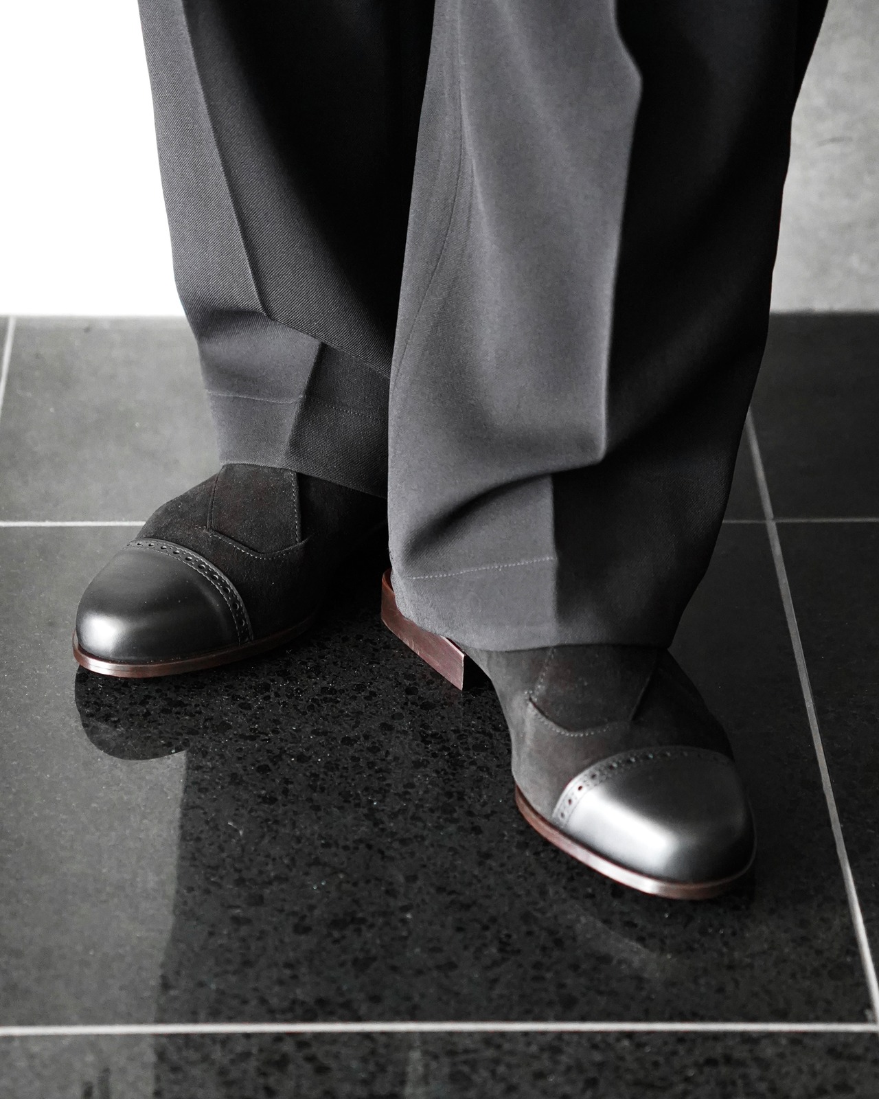 NULLUS SS26 CAP TOE BALLET - BLACK SUEDE